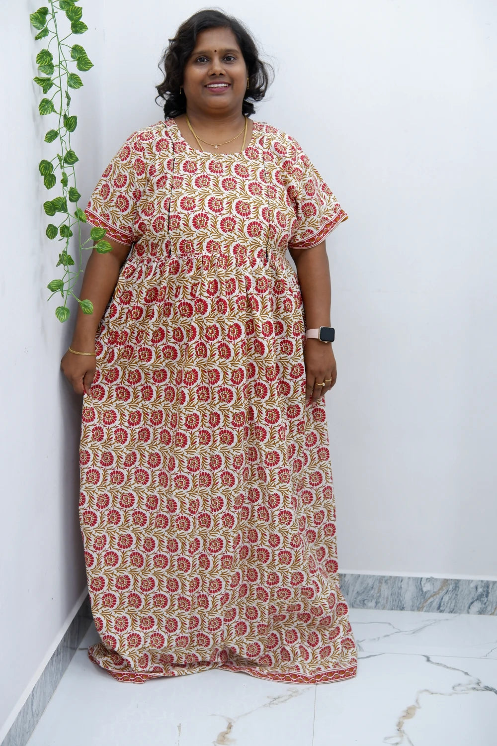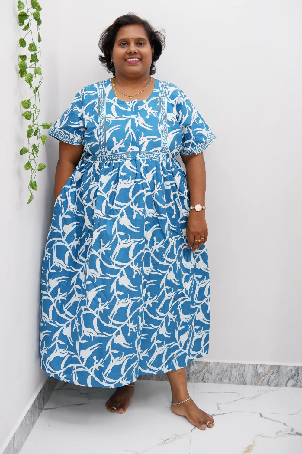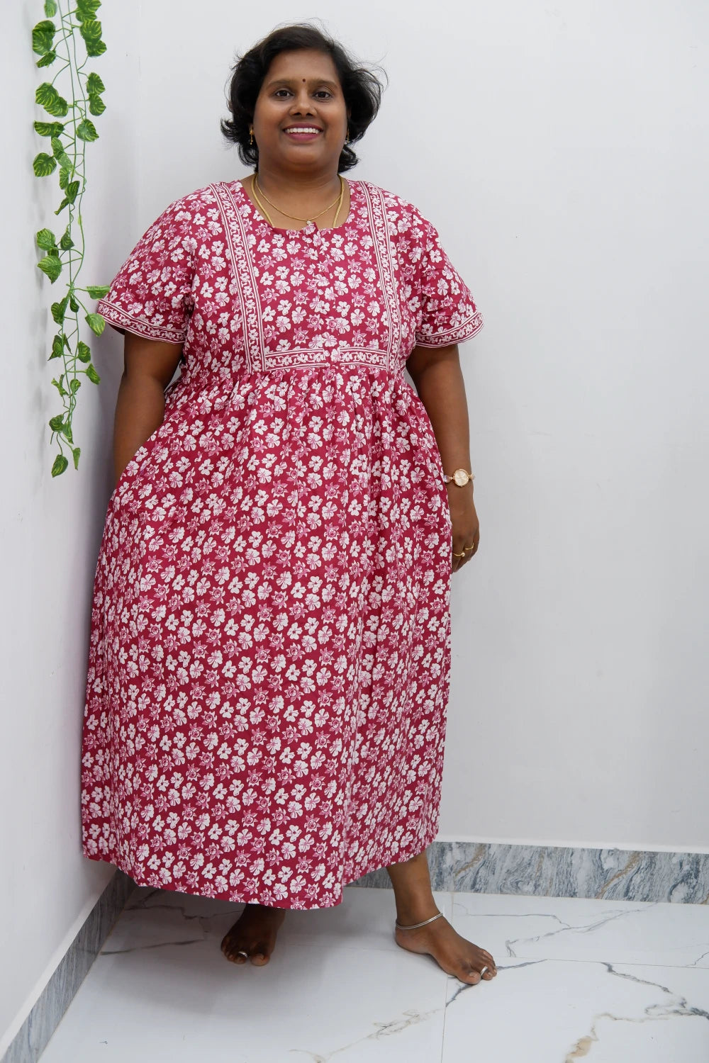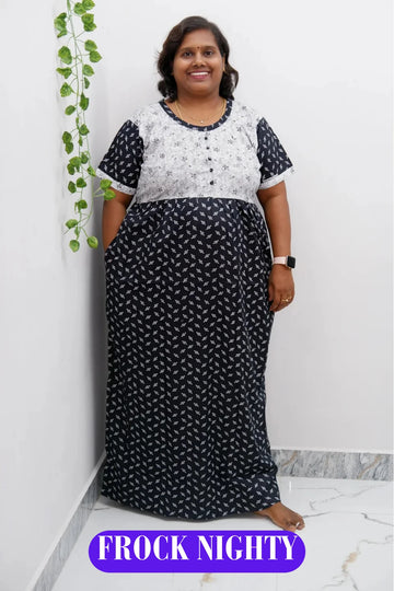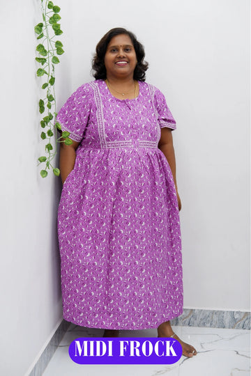 Midi Frock with Back Knot & Front Zip Jyothi Cotton Nighty