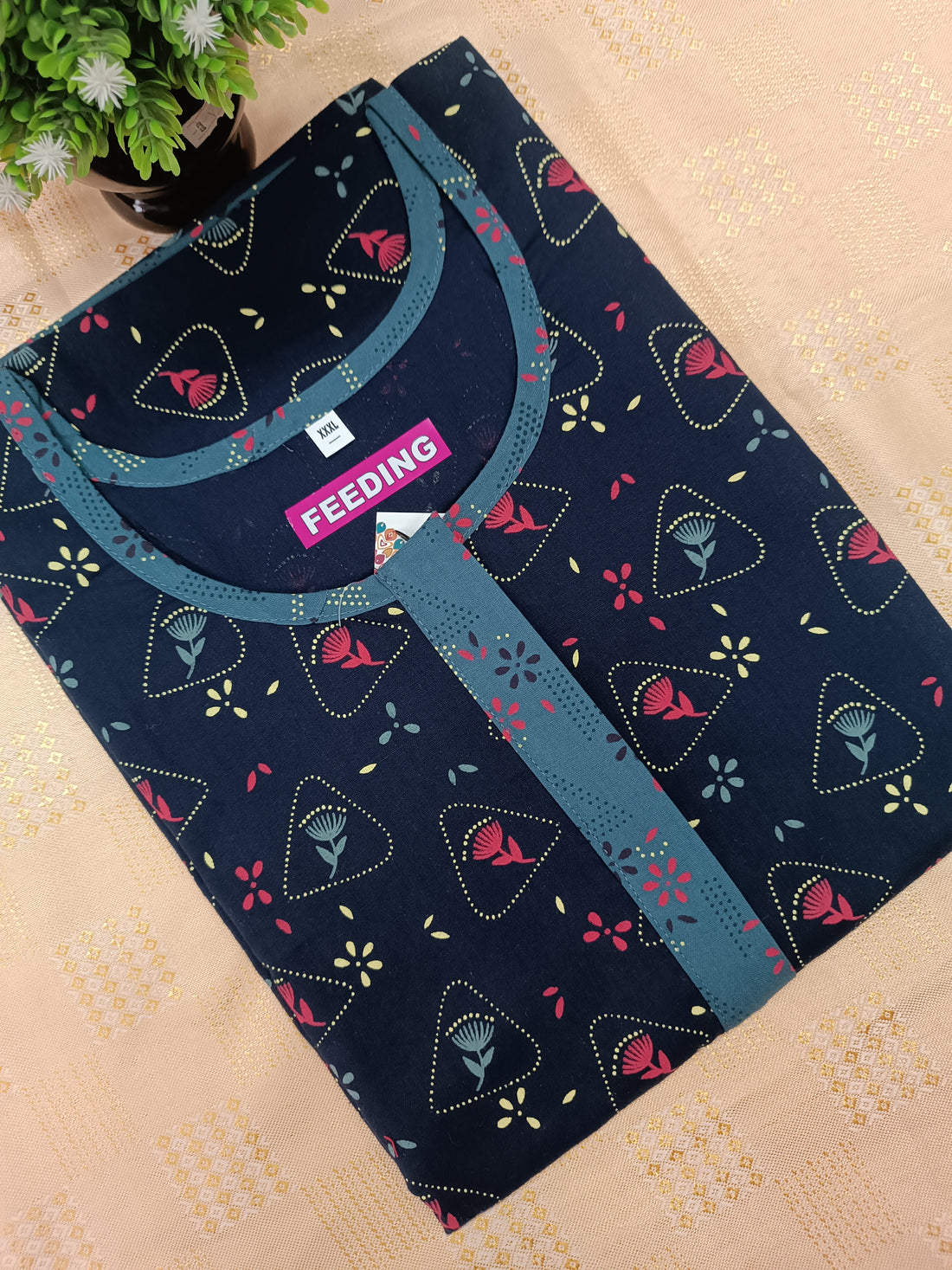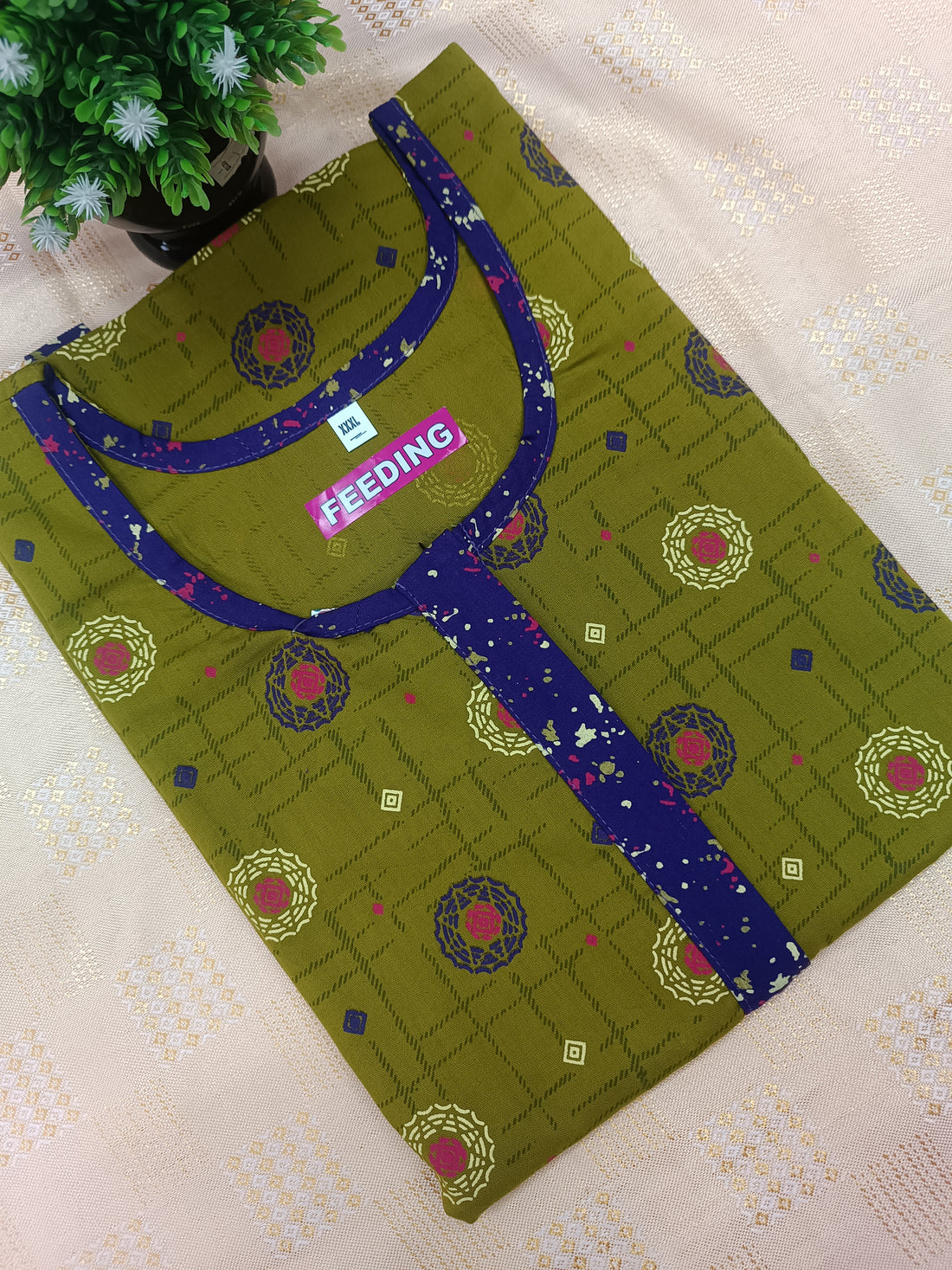 Feeding-Friendly Cotton Nighty with Long Zip
