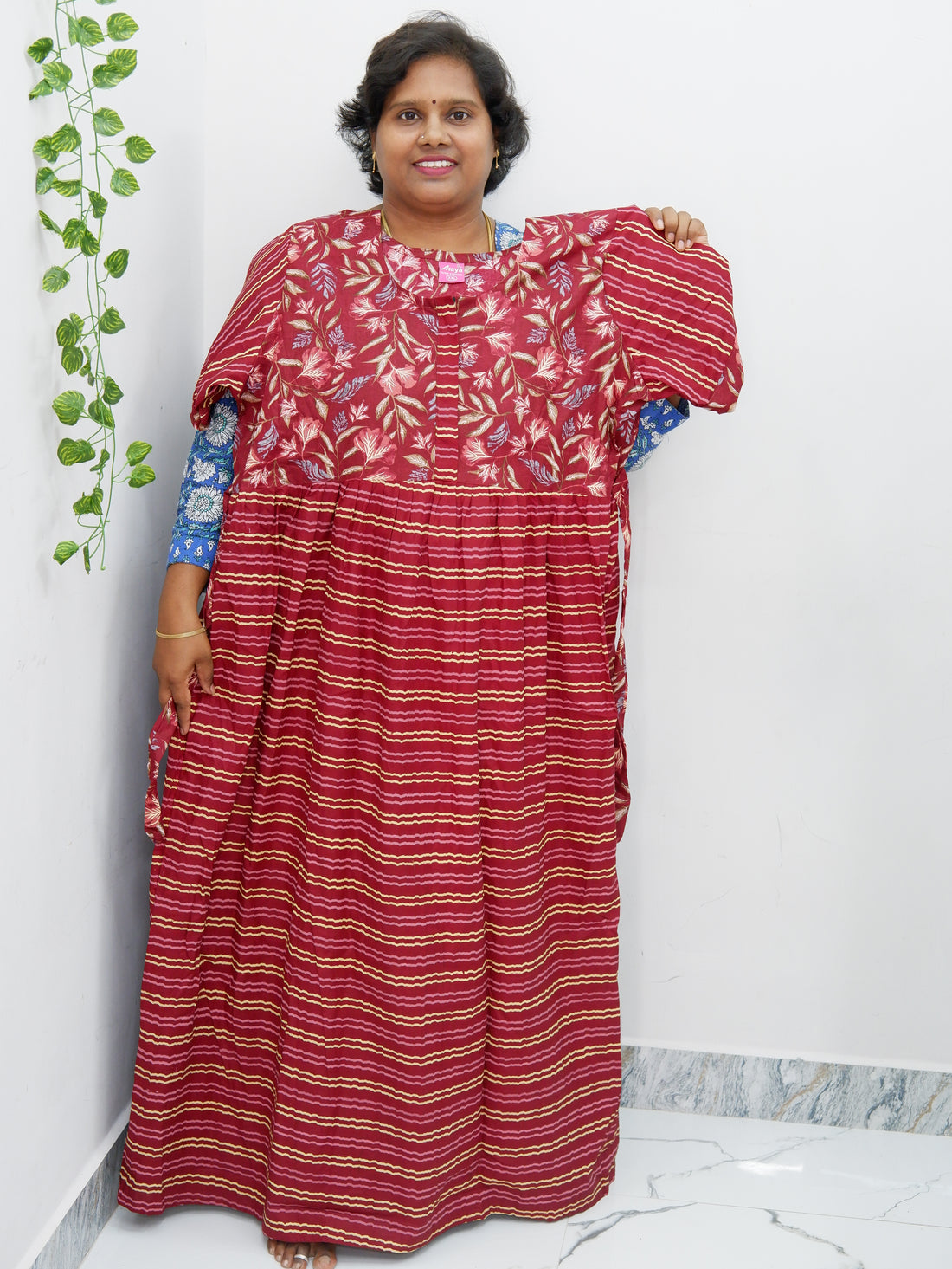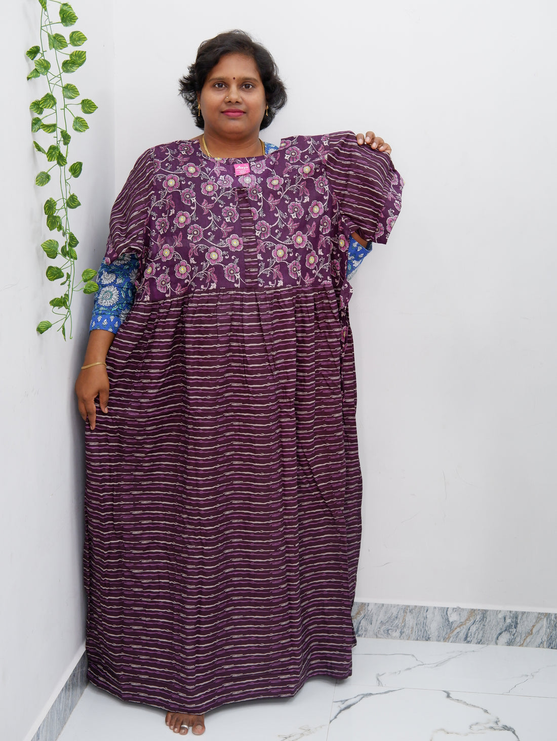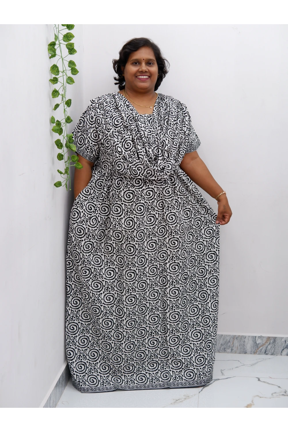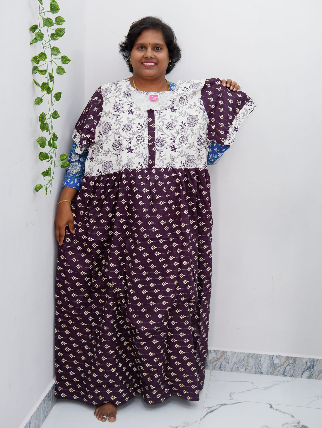 Experience unmatched comfort and style with our Shawl Draped Jyothi Cotton Frock Nighty, crafted from...