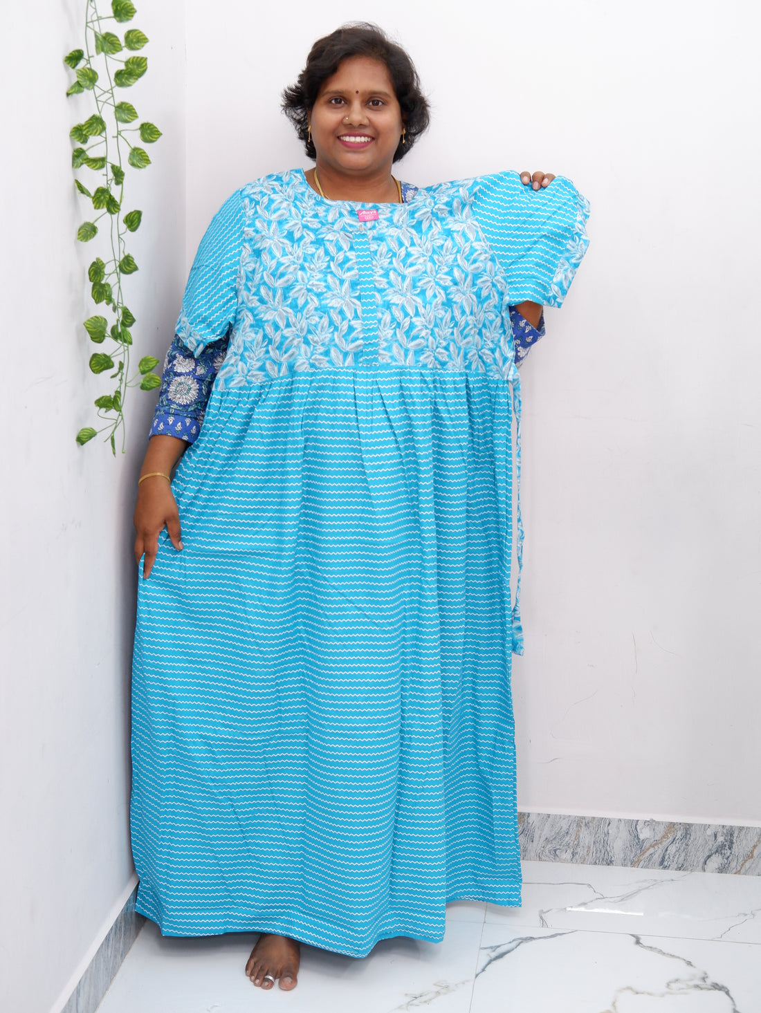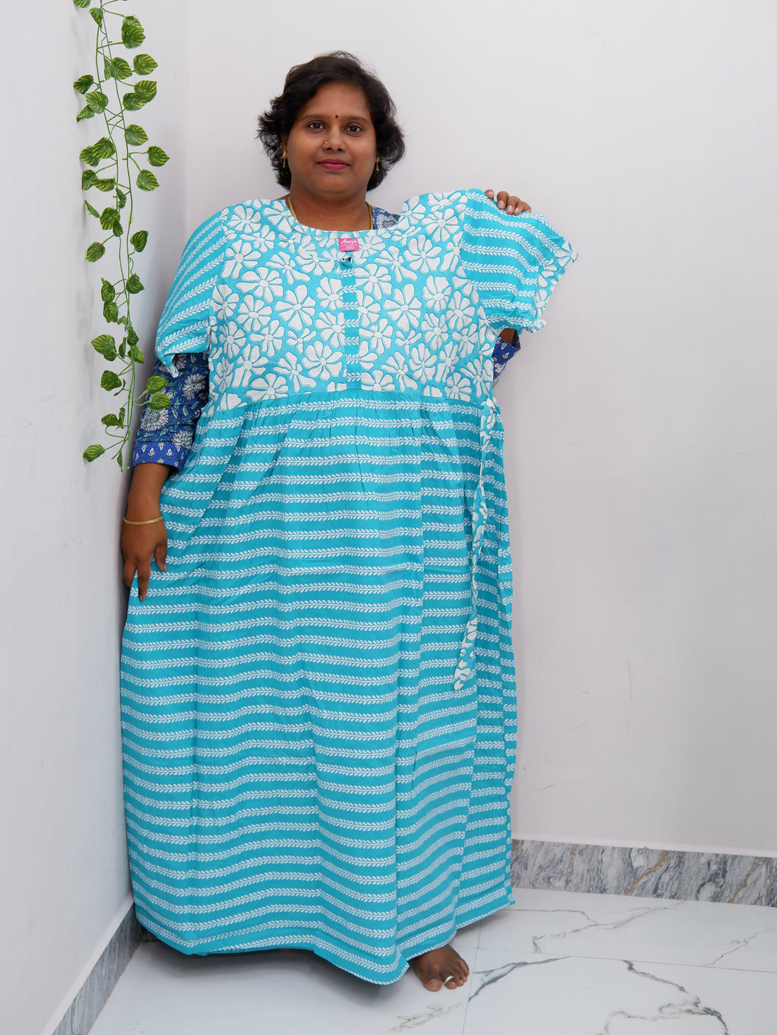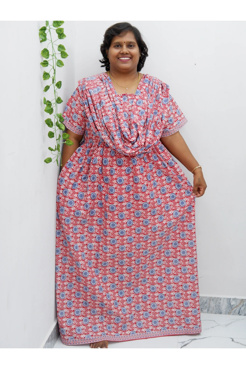 Shawl Draped Cotton Frock Nighty – Soft & Breezy