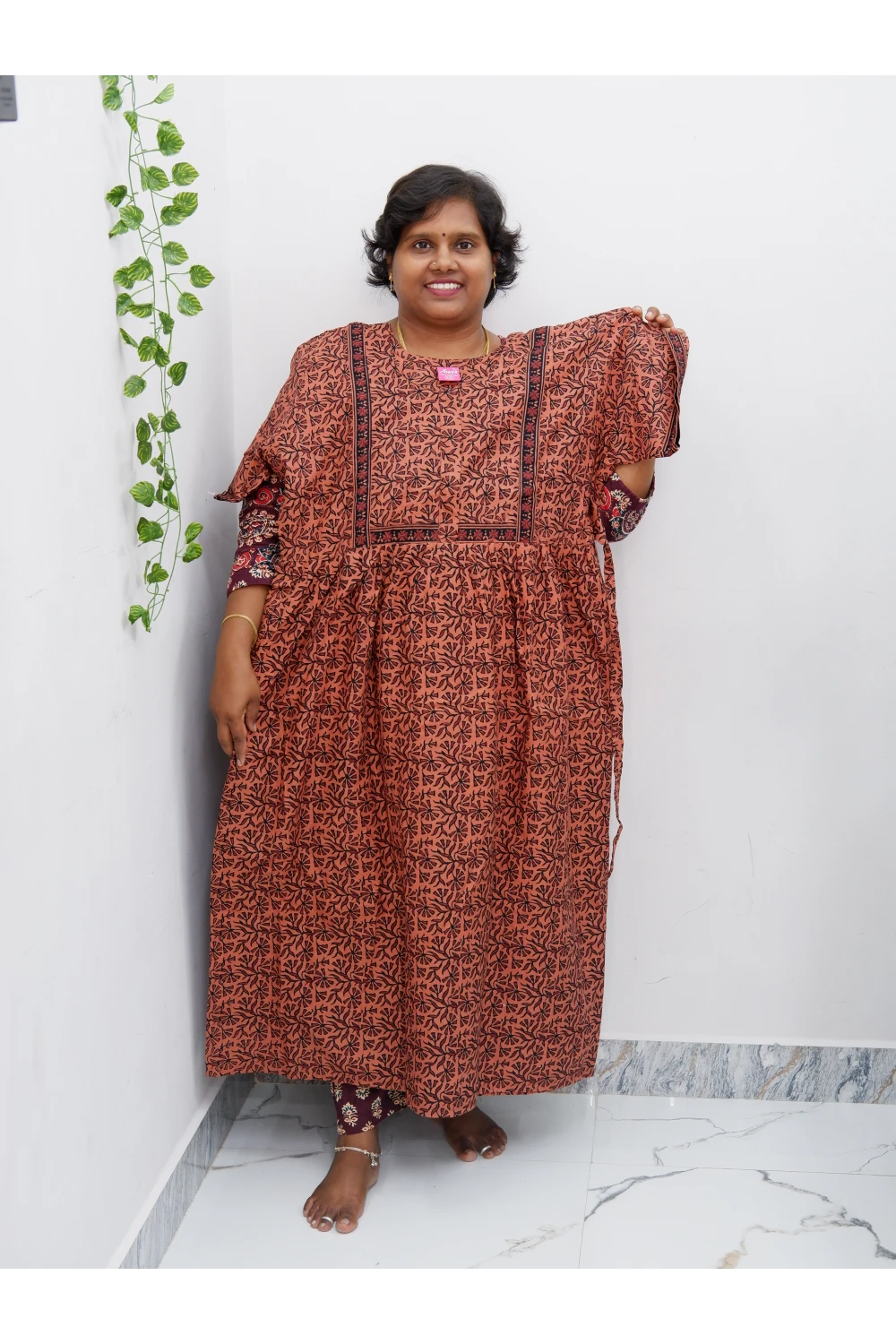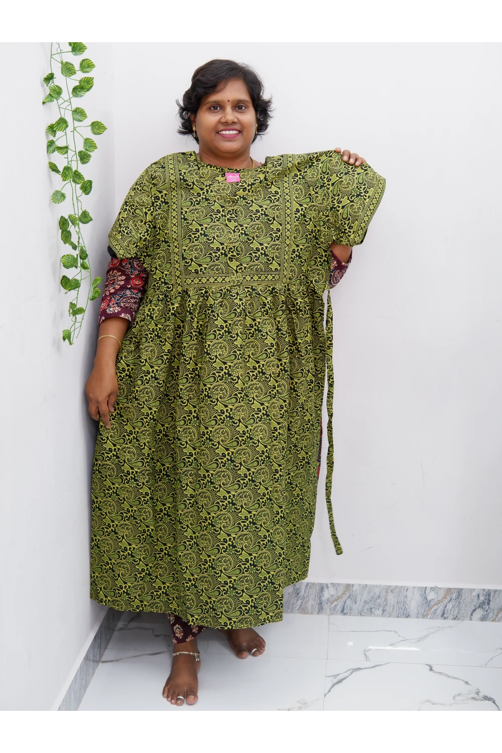 Midi Frock with Back Knot & Front Zip Jyothi Cotton Nighty