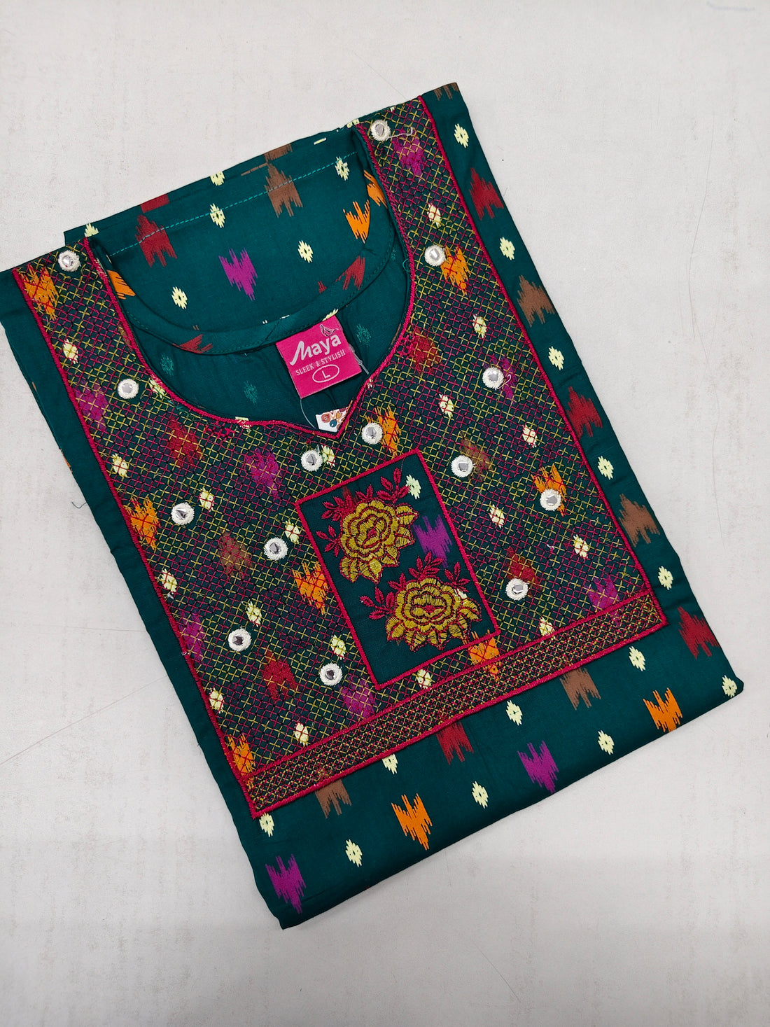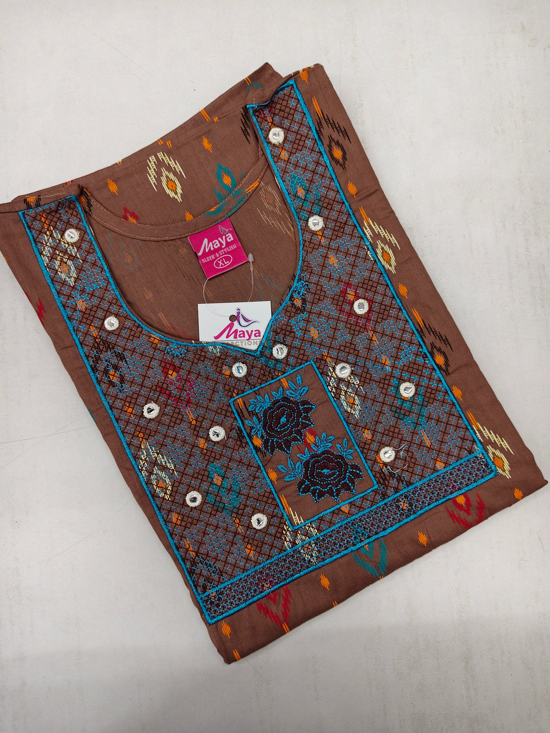 Mirror Work Cotton Nighty with Elegant Embroidery – Soft & Stylish