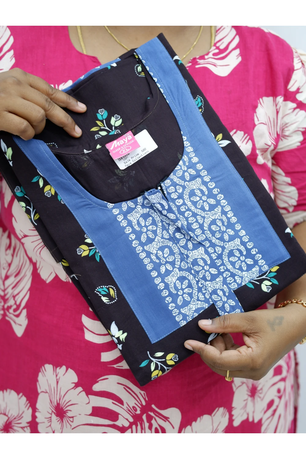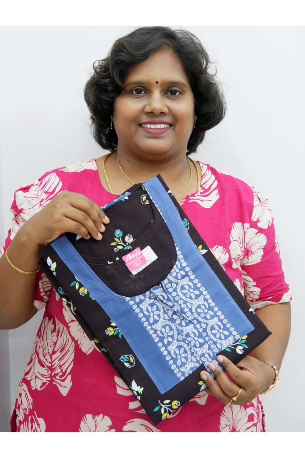 This full-length cotton nighty features a modern design, smooth finishing, and a comfortable fit that drapes beautifully for women of all sizes. Ideal for bedtime, home wear, or casual indoor lounging.