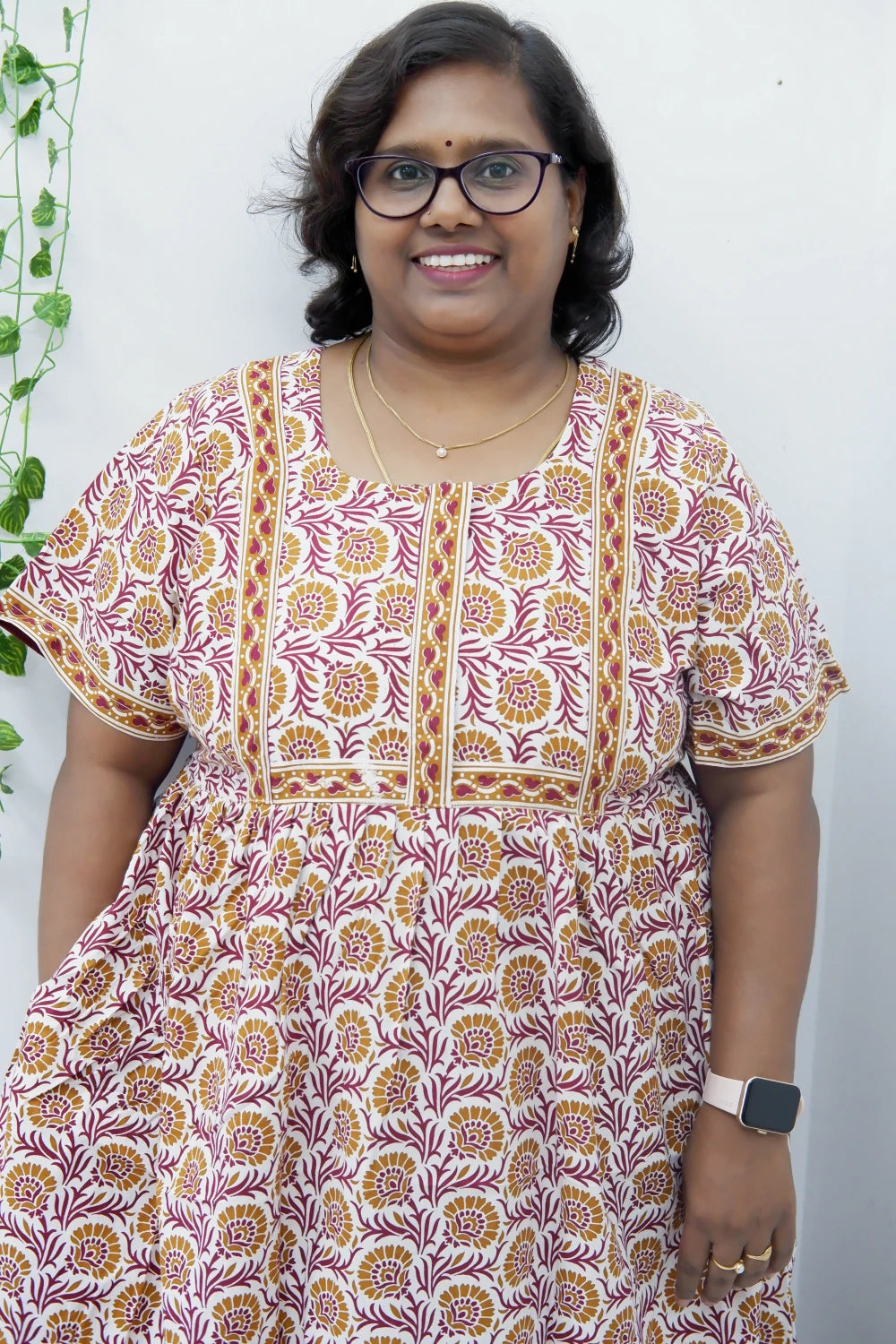 Midi Frock with Back Knot & Front Zip Jyothi Cotton Nighty