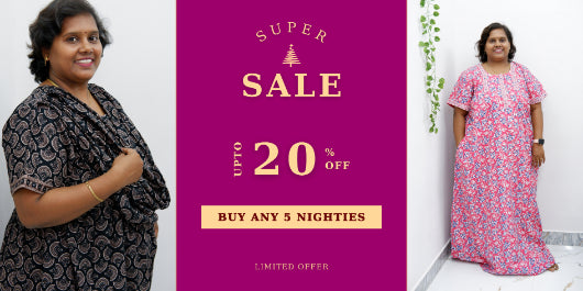 Step into effortless comfort with this Fashionable Printed Midi Night Frock with Hip Back Knot, crafted from soft Jyothi Cotton for a breathable and gentle touch on the skin. Designed with a front zip closure, this nighty offers easy nursing access, making it a perfect choice for feeding moms. The midi-length frock style provides comfortable below-knee coverage, while the stylish printed design and side pocket add both charm and convenience. Ideal for home wear, daily lounging, maternity, and nightwear.