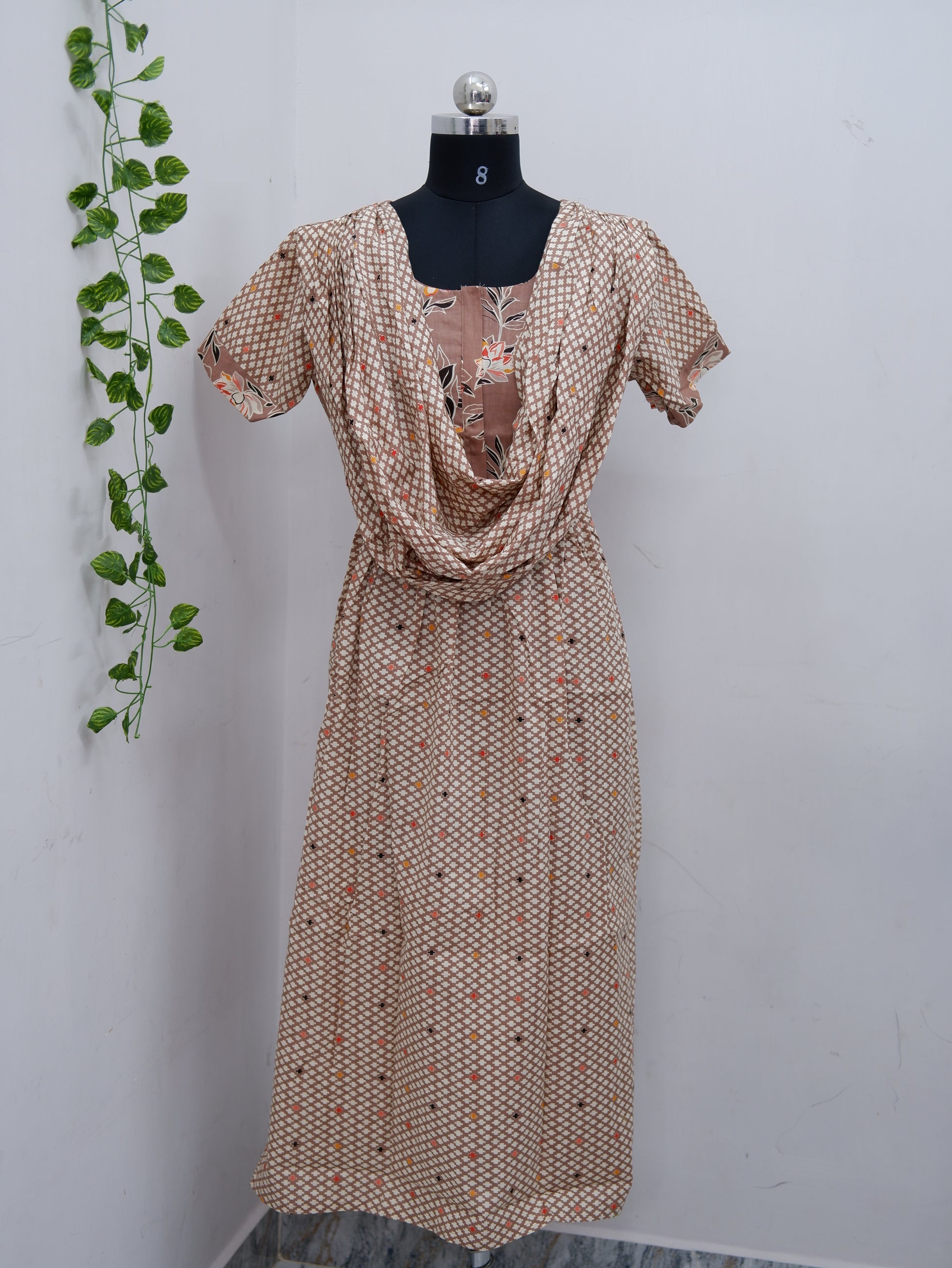 Shawl Draped Cotton Frock Nighty – Soft & Breezy