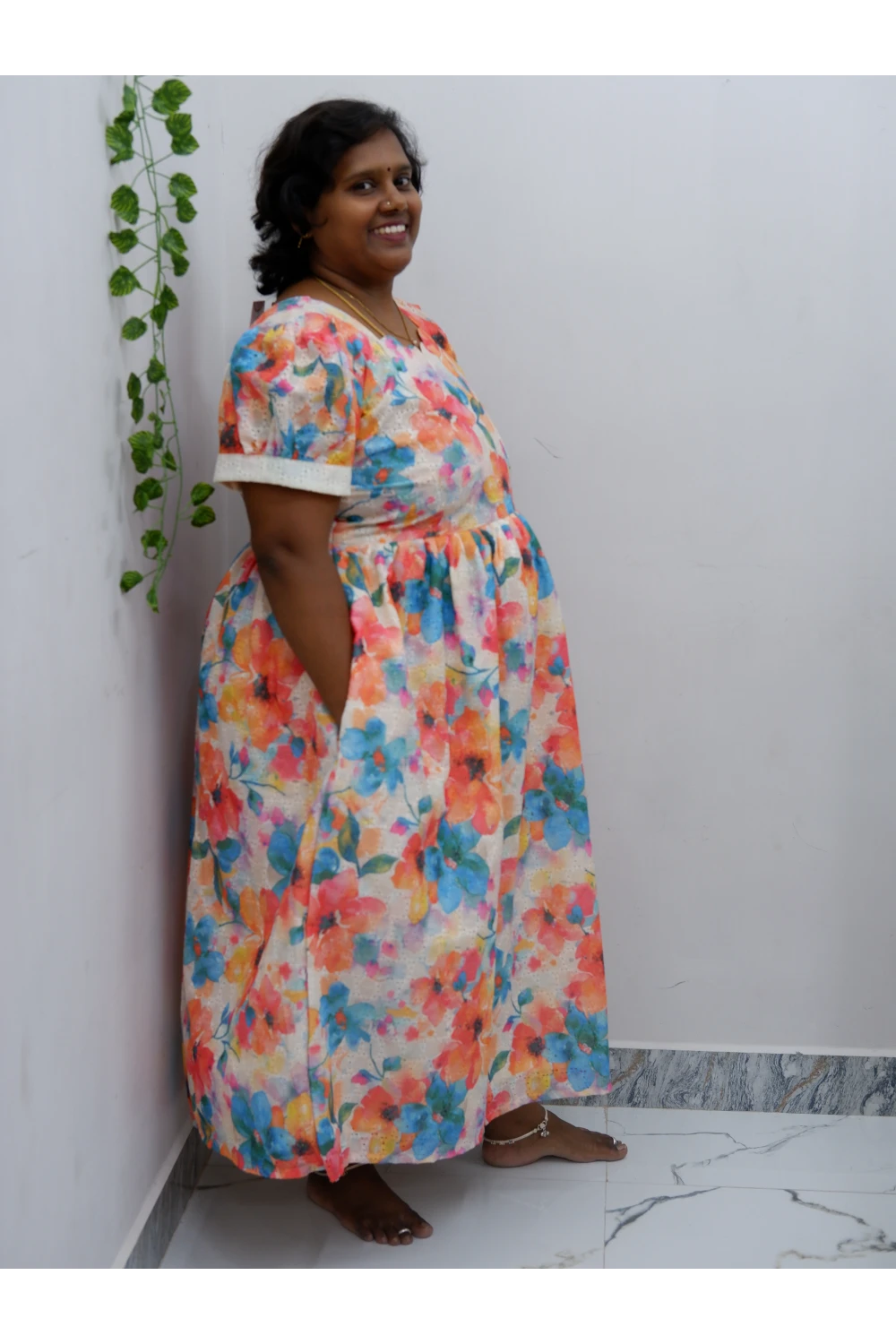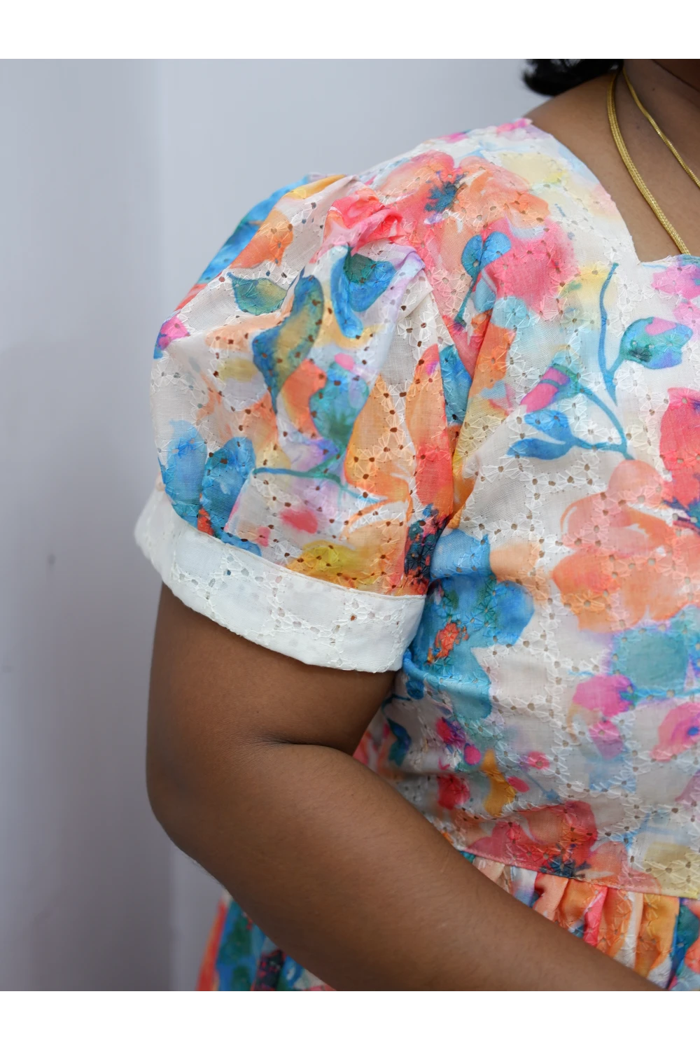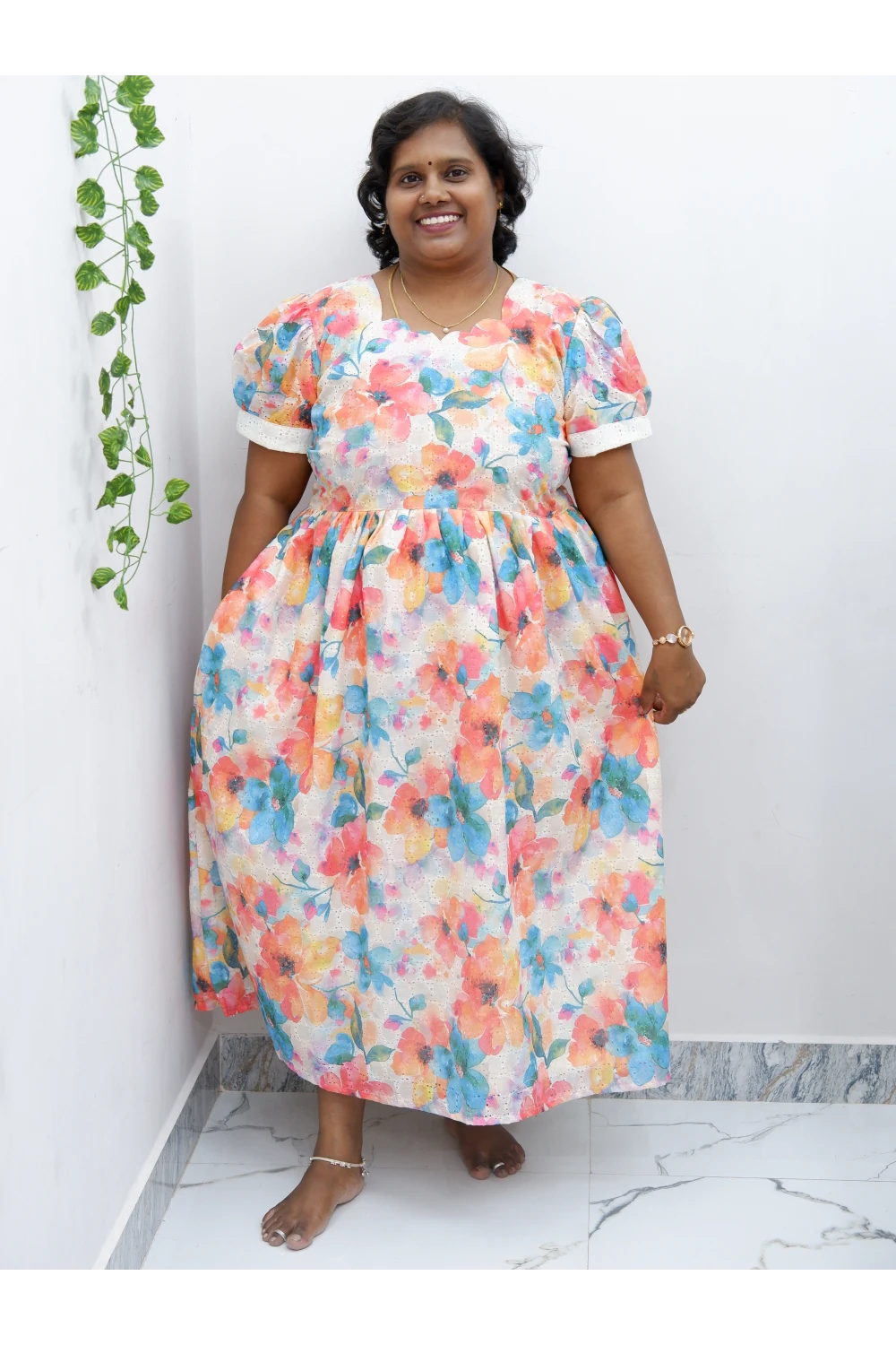 Trendy Puff Sleeve Kurti –Acoba Cotton Midi with lining Length Frock Style for Women
