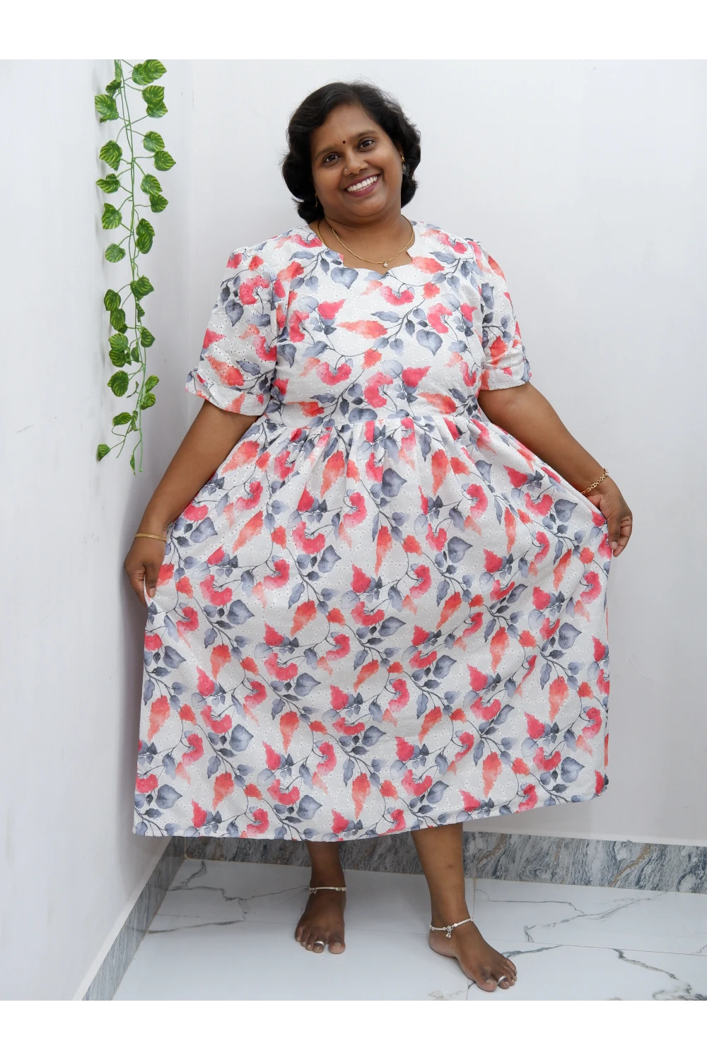 Trendy Puff Sleeve Kurti –Acoba Cotton Midi with lining Length Frock Style for Women