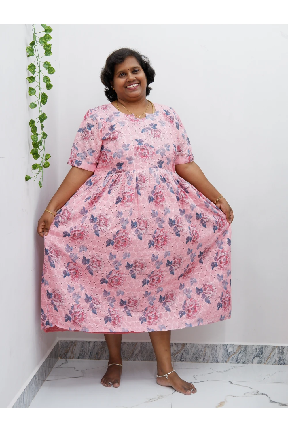 Trendy Puff Sleeve Kurti –Acoba Cotton Midi with lining Length Frock Style for Women