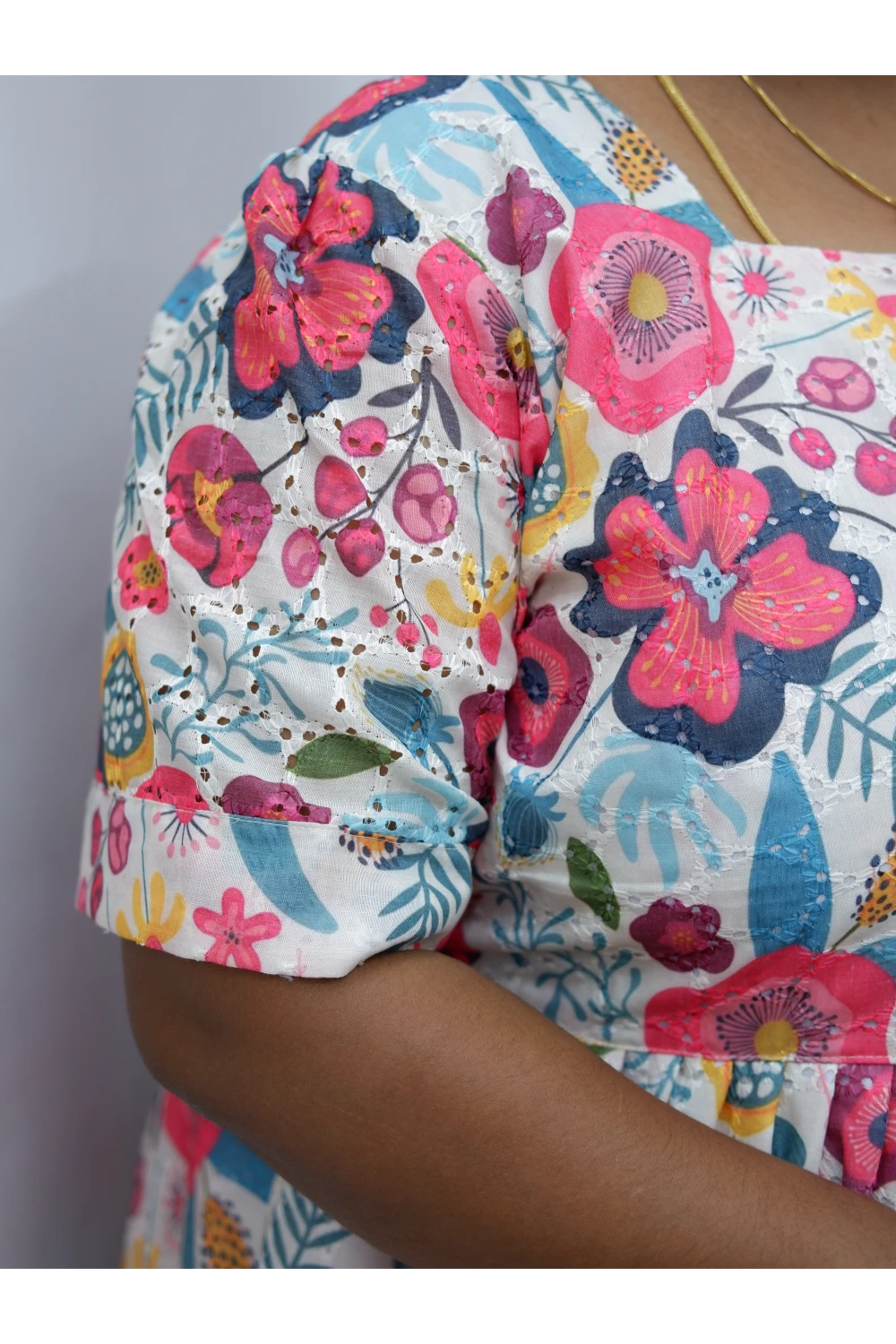 Trendy Puff Sleeve Kurti –Acoba Cotton Midi with lining Length Frock Style for Women